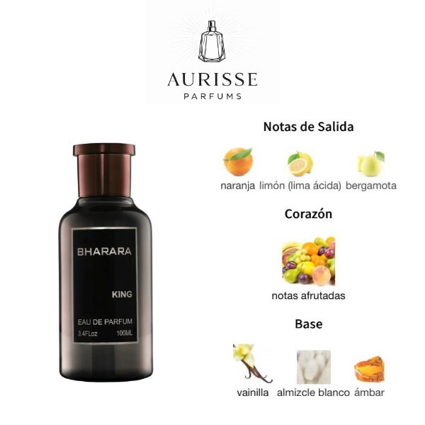 Esta combinación de citrus, dulzura frutal y calidez ambarina hace de Bharara King una opción ideal para salidas nocturnas, eventos especiales o cualquier ocasión donde buscás un perfume audaz y memorable que complemente tu presencia con confianza.