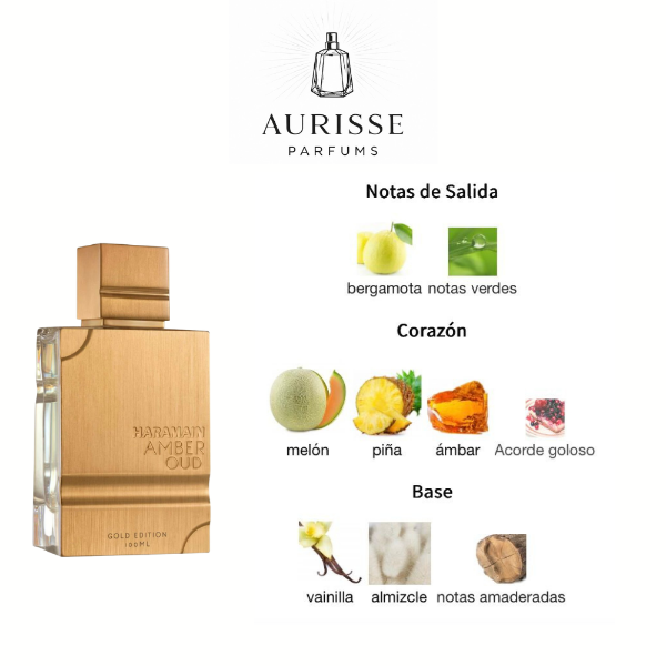Amber Oud Gold Edition de Al Haramain es una fragancia unisex que equilibra frescura frutal, dulzura oriental y calidez ambarina en una composición envolvente y sofisticada. Desde la primera aplicación, ofrece una apertura vibrante con bergamota y notas verdes que aportan energía y luz, seguida de un corazón jugoso y dulce que combina melón y piña con cálidos matices de ámbar. Con el secado, la fragancia se asienta en una base cremosa y sensual de vainilla, almizcle y maderas, dejando una estela elegante y memorable. Esta mezcla de facetas lo convierte en una opción versátil para quienes desean una fragancia distintiva que destaque en diversas ocasiones.