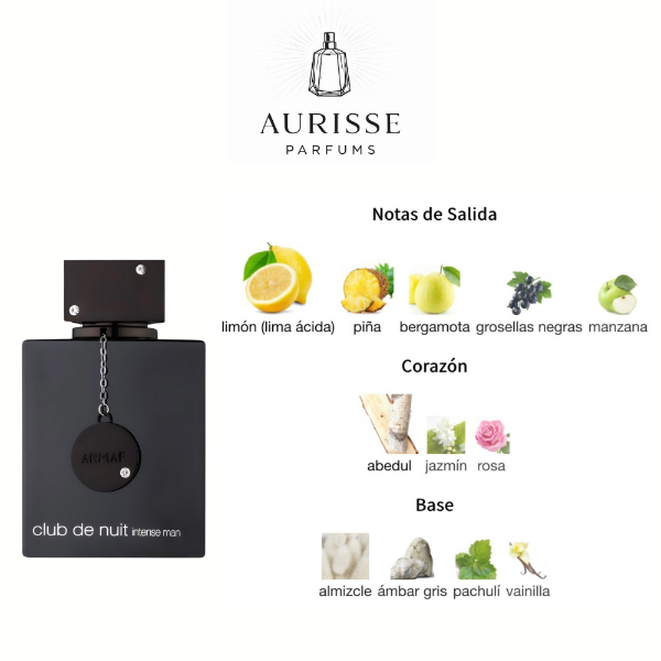 Fragancia intensa y sofisticada con una apertura cítrica de limón, piña y bergamota que evoluciona hacia un corazón ahumado y elegante. Su base de ámbar gris, pachulí y vainilla crea una estela profunda y masculina.