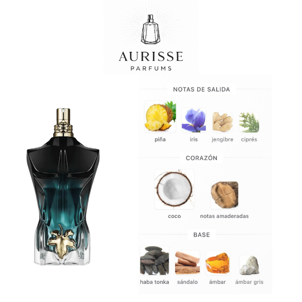 Le Beau Le Parfum de Jean Paul Gaultier es una fragancia masculina intensa, tropical y seductora, que combina notas frutales luminosas con un fondo cálido y amaderado. Lanzado en 2022, este perfume representa una versión más profunda y envolvente dentro de la línea Le Beau, manteniendo un perfil exótico y moderno.
